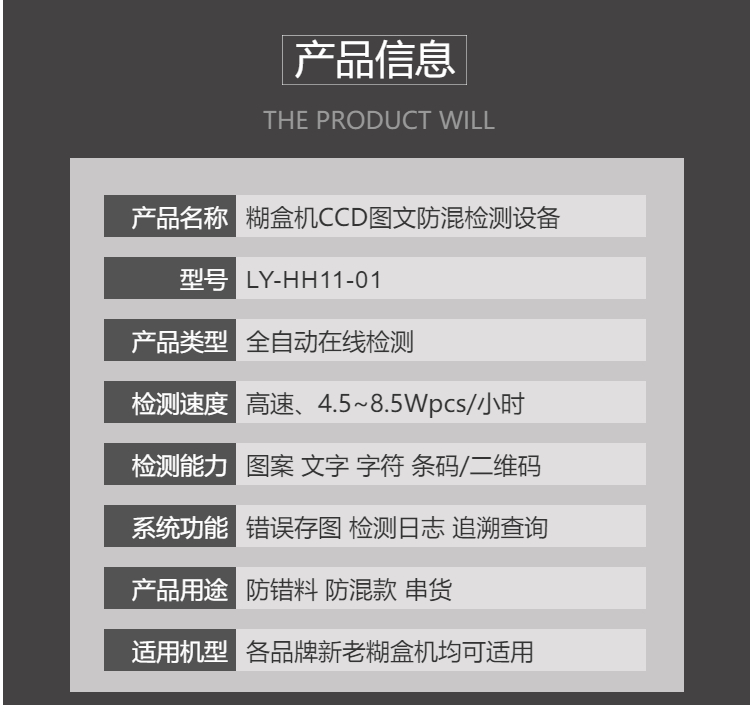 糊盒機在線CCD檢測系統加裝在走紙航道上,連線識別混貨混款,可幫助紙品包裝廠解決粘盒出貨混料問題,提高出貨品質。