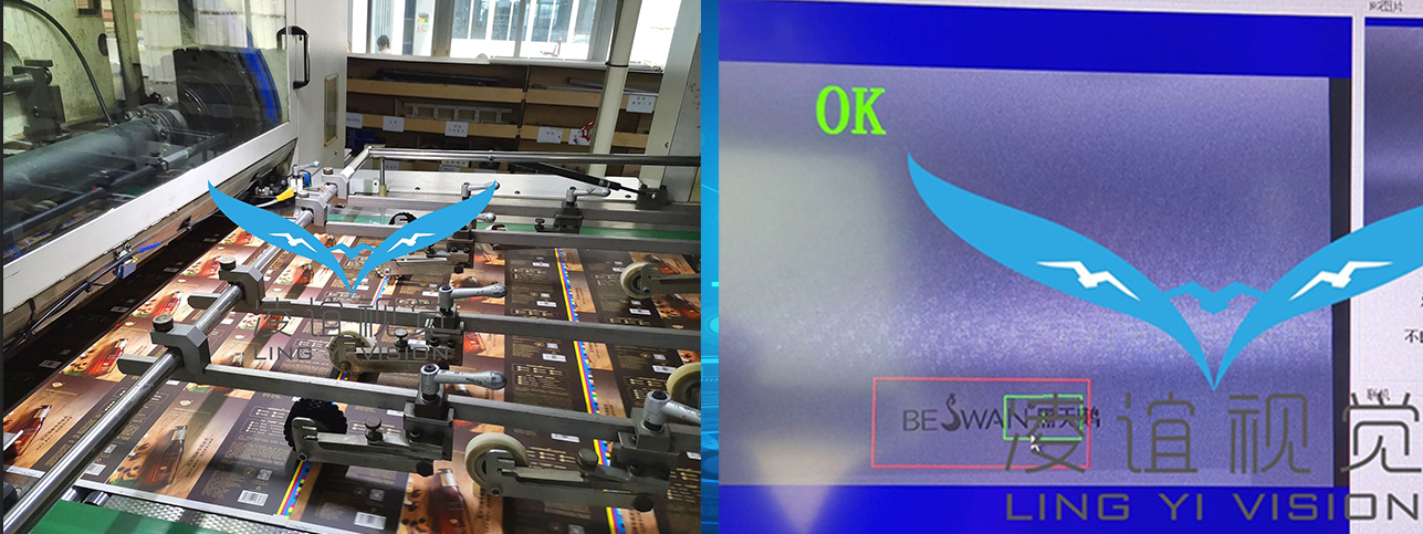 啤機(jī)/模切機(jī)在線檢測(cè)系統(tǒng)是加裝在模切機(jī)上,通過(guò)對(duì)每張待模切的卡紙的局部成像,依據(jù)圖像中的條碼、二維碼、圖形文字、燙金燙銀等特征,來(lái)判斷該待模切的卡紙是否存在混料、倒頁(yè)、白頁(yè)、漏印、漏燙金、漏燙銀,局部印刷不良等不良現(xiàn)象。當(dāng)發(fā)現(xiàn)不良時(shí)及時(shí)輸出停機(jī)報(bào)警信號(hào),供人工排除問(wèn)題物料并復(fù)位重新運(yùn)行,以確保模切后的產(chǎn)品的質(zhì)量,該系統(tǒng)的高速穩(wěn)定運(yùn)行保障了生產(chǎn)的良率,杜絕了不良產(chǎn)品的產(chǎn)生,避免了客訴現(xiàn)象的產(chǎn)生,大大提高了印刷廠的生產(chǎn)效率。